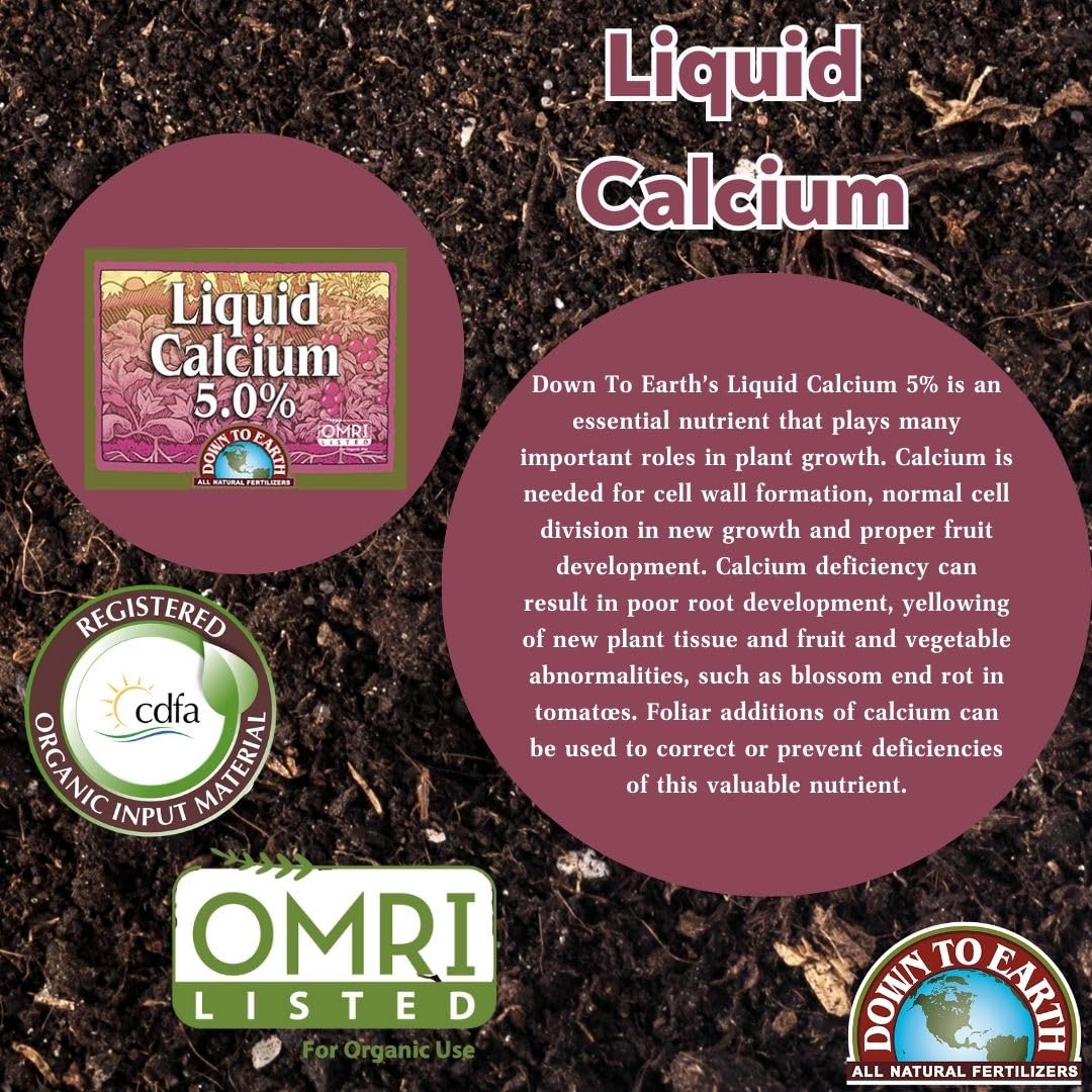 Down To Earth All Natural Fertilizers OMRI Listed Water Soluble Liquid Calcium 5.0% Concentrate - Prevent or Treat Calcium Deficiency in Garden Vegetables, 32 oz