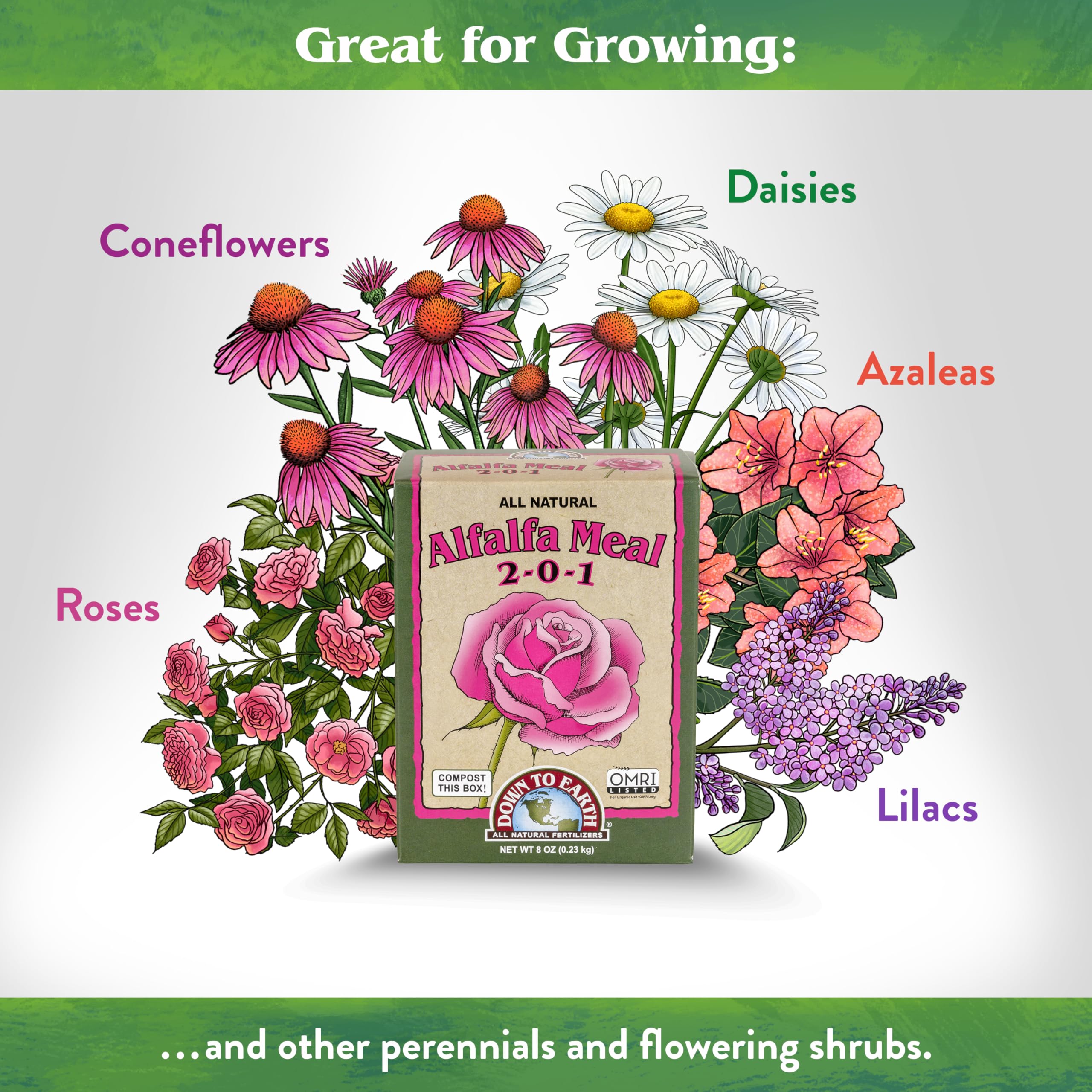 Down To Earth All Natural Fertilizers Organic Alfalfa Meal - Plant Food for Roses, Bulbs, Flowers and Ornamentals 2-0-1, 0.5 lb