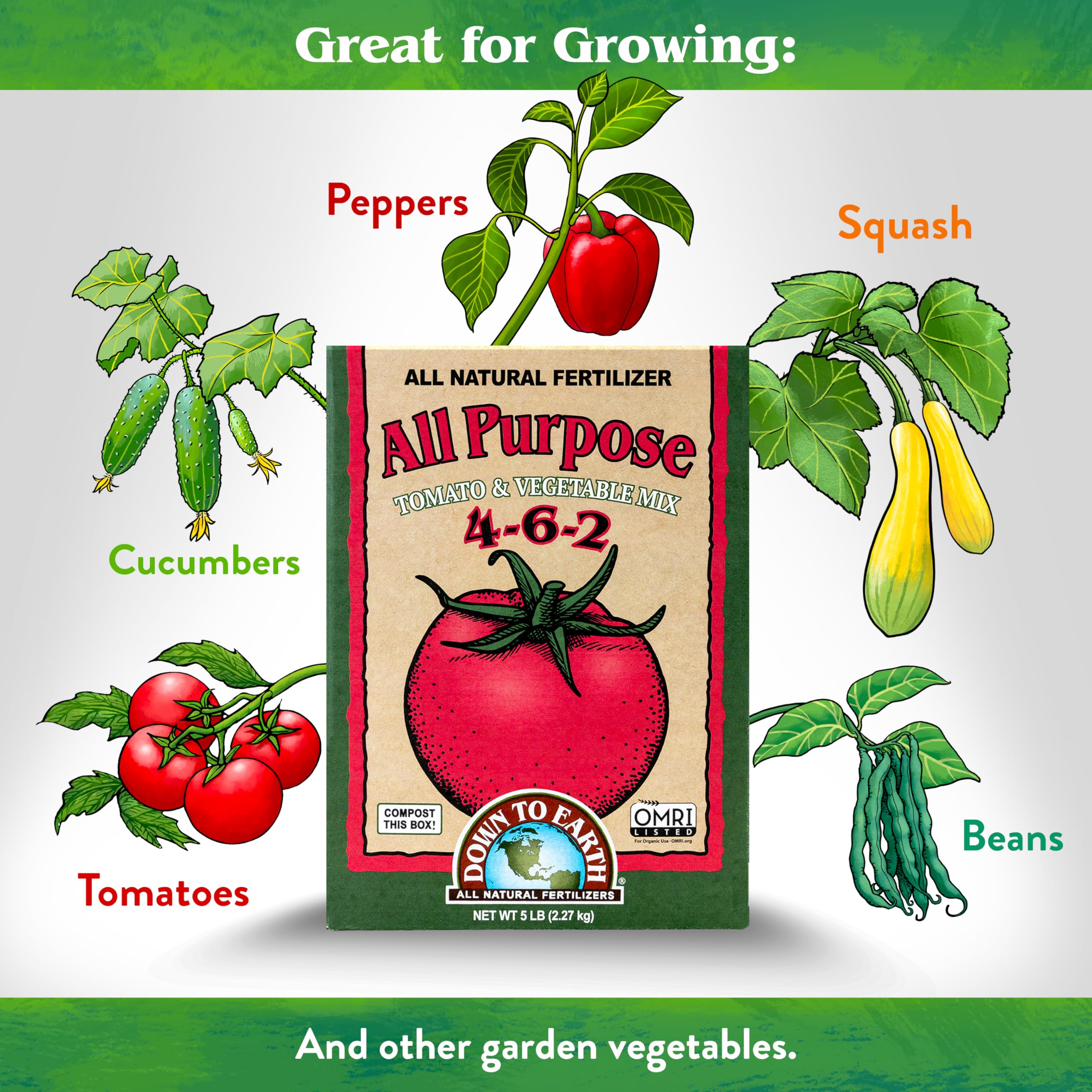 - Down To Earth All Purpose Mix is a five pound box of fertilizer with 4-6-2 formula and is ideal for all types of transplants