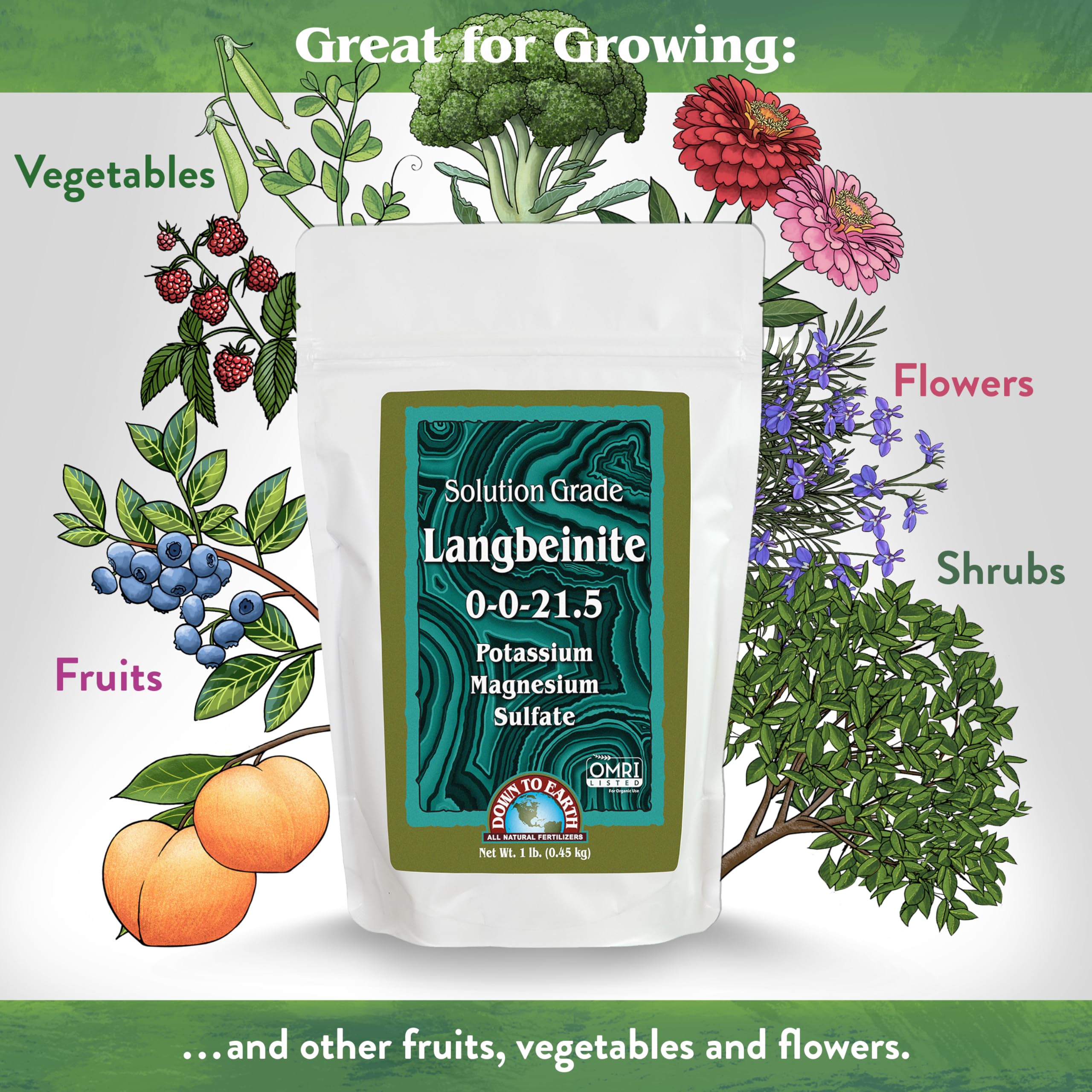 Down To Earth All Natural Fertilizers Organic Solution Grade Langbeinite - Professional Grade Potassium Magnesium Sulfate Powder 200 mesh for Liquid or Spray 0-0-21.5, 1 lb