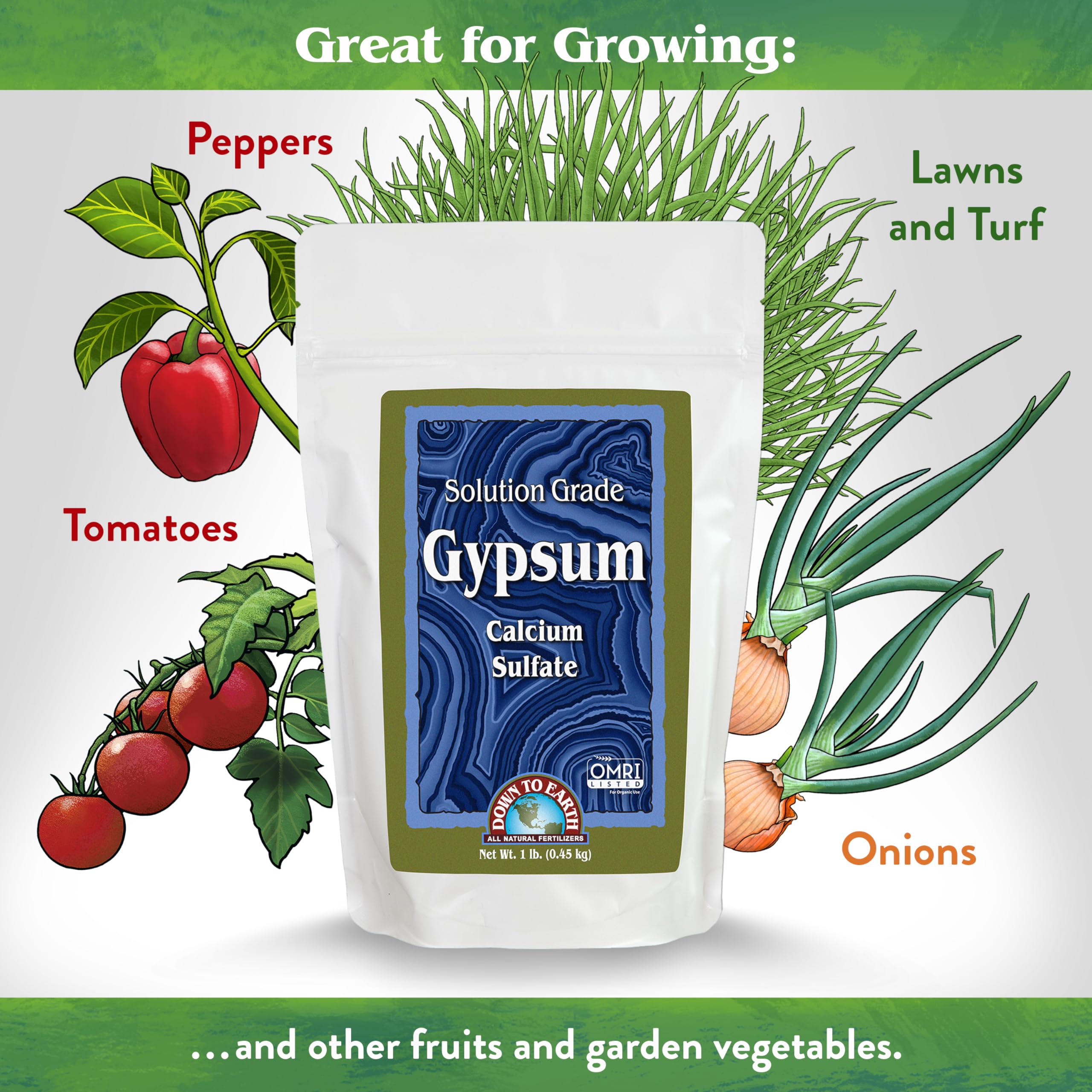 Down To Earth All Natural Fertilizers Organic Solution Grade Gypsum Calcium Sulfate - Professional Grade Gypsum Powder 325 mesh for Liquid, Drip or Spray Applications, 1 lb